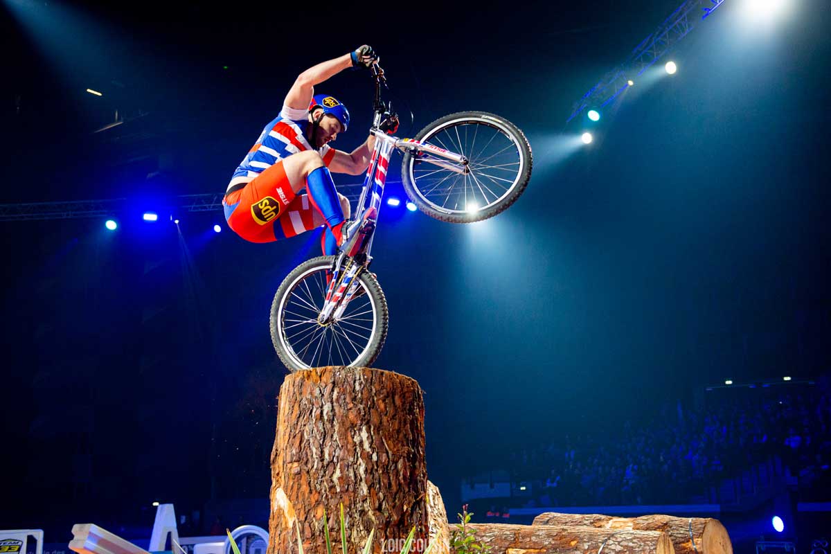 Devant 5500 personnes, pour la deuxième édition du trial indoor international de Bordeaux à l’Arkéa Arena, le spectacle était au rendez-vous. Si le public venu nombreux, a assisté aux performances des 6 pilotes moto en compétition, il aussi pu voir tout d’abord le concert du groupe de blues « Talaho », puis un show de danse du « Studio Attitude ». Au moment de l’entracte, ce sont deux habitués de Bordeaux qui sont venus présenter les performances de haut vol : Tout d’abord Nicolas Vallée n°1 mondial en vélo trial, et Christophe Briand top pilote mondial de freestyle trial qui a réalisé son fameux backflip du haut du spot « Team 33 » . Nouveauté cette année, le show acrobatique de « Mecanic’ Circus » avec un numéro d’équilibriste sur un petit chopper.