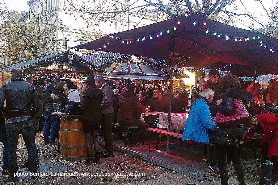 Les rues du centre de Bordeaux étaient noires de monde en ce premier Samedi de Décembre, un nouveau pied de nez aux intégristes. En ce week-end de Téléthon la foule a envahi le Marché de Noël qui est très riche en suggestions de cadeaux mais aussi en possibilités de restauration.