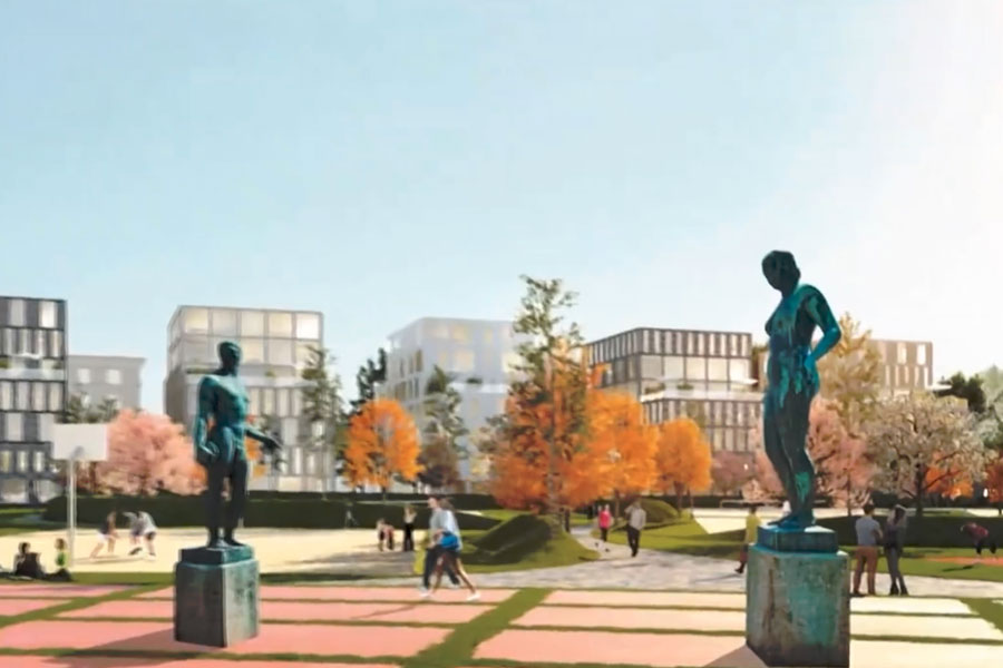 « Un des grands défis que nous nous sommes fixé était de réussir à positionner les surfaces relativement importantes représentant les nouveaux immeubles et bâtiments commerciaux tout en conservant l’ensemble des terrains de sport de plein air. »