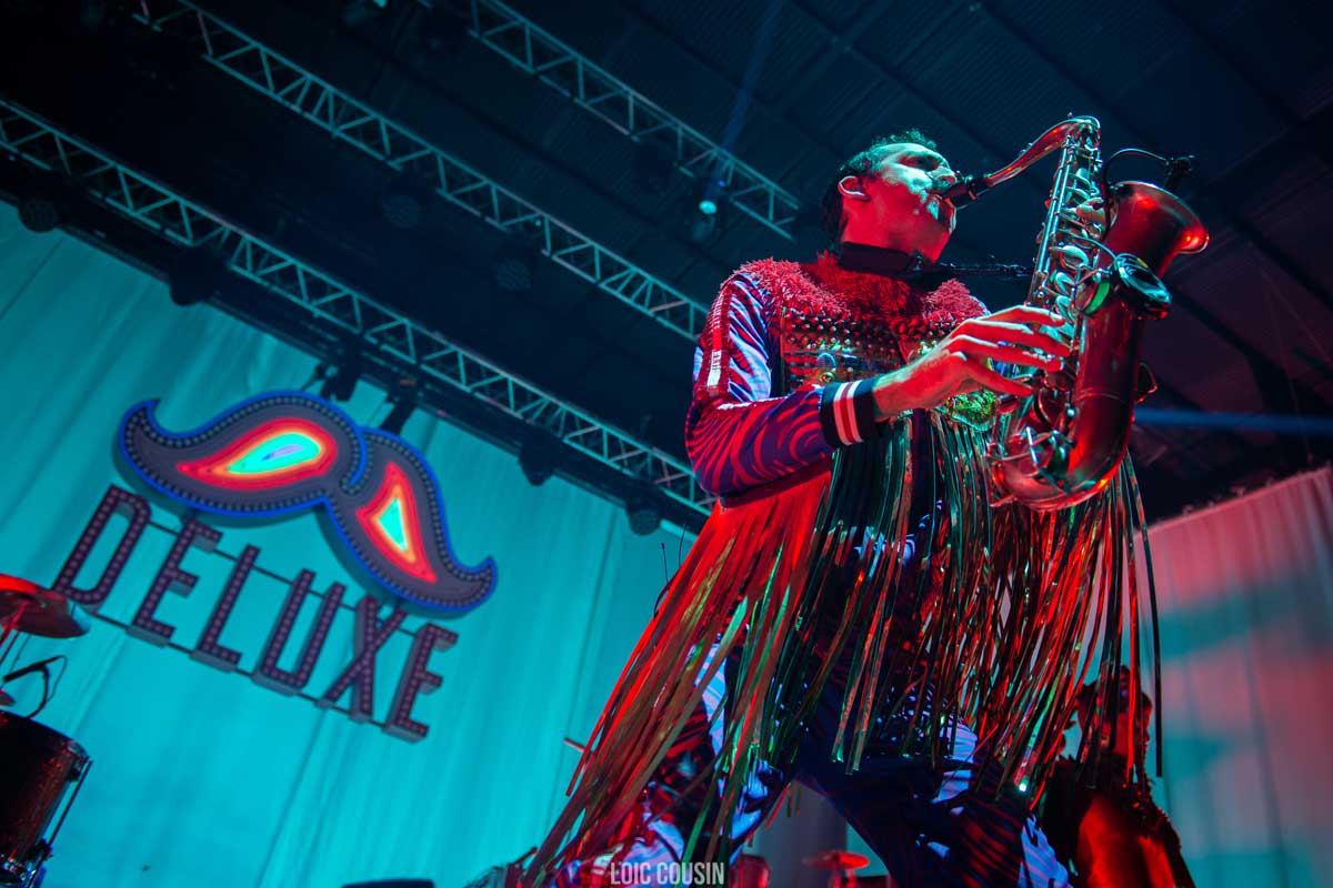De la chanteuse Liliboy, au saxophoniste Pépé, en passant par Pietre à la guitare, Soubri aux percussions, Kaya à la basse, Kilo à la batterie, c’est une soirée toute en musique festive, chorégraphies dansantes et lumières/tenues colorées qui a été proposée aux girondins. Comme à son habitude, le groupe Deluxe est arrivé sur scène avec des costumes toujours aussi "design". Si la précédente tournée, le groupe était tout en rouge, ce coup ci, c’est un arc-en-ciel de couleurs qui arrive sur scène (pour rappel les couleurs de l’arc en ciel sont : violet, indigo, bleu, vert, jaune, orangé, rouge)