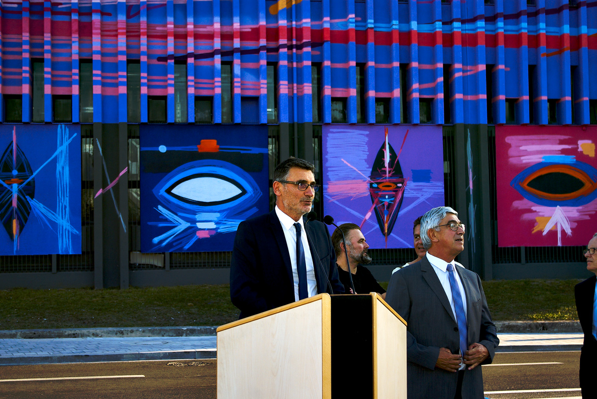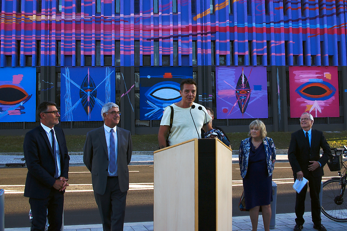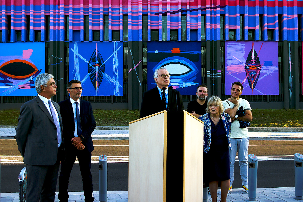 C’est en présence de Patrick Pujol (maire de Villenave d’Ornon), du conseiller métropolitain Michel Duchène (Vice-président en charge des grands projets d’aménagement urbains), Martine Jardiné (Conseillère départementale du canton Villenave-d’Ornon), Pierre Lecaroz (Président de l’association d’art urbain Pôle Magnetic), et bien sûr de l’artiste Stéphane Carricondo qu’a été inauguré le nouveau visage de la Place Aristide Briand, ce jeudi 19 septembre. Une nouvelle étape, après l’arrivée du Tram C ( dont le retour pleinement fonctionnel de la ligne est attendu prochainement) dans la transformation de la ville et de ce qui deviendra, à terme, le futur centre-ville de Villenave d’Ornon.