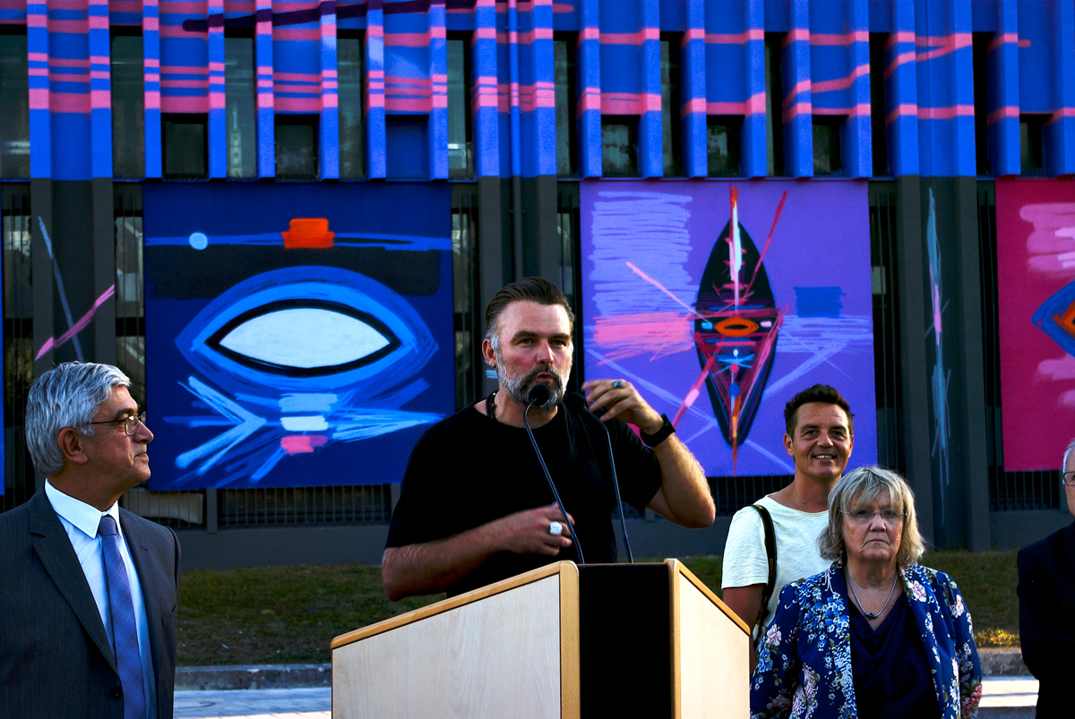 - Le street artiste auteur de la fresque "Trait d’Union", du collectif d’art urbain 9e Concept, choisi à l’issu d’une concertation entre élus et riverains parmi trois projets différents.
