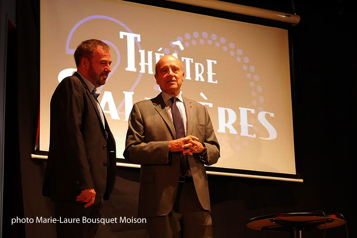 En effet, s’avança dans l’allée, un attroupement qui progressait lentement au centre duquel le maire de la ville de Bordeaux répondait aux questions d’un animateur plein de fougue. Un cameraman filmait la scène, éblouissant les visages habitués à la lumière des projecteurs, et dont les paupières ne clignaient pas. On annonça Frédéric Bouchet ; le directeur auteur comédien monta sur la scène avec l’aisance de quelqu’un qui se sent chez lui. Remerciant les spectateurs, il conta en quelques minutes et avec une émotion assaisonnée d’humour les vingt dernières années de son théâtre. Enfin, le maire fut convié à venir sur scène. Alain Juppé c’est son nom, enjamba non sans une certaine appréhension les marches raides qui menaient à la scène nous spécifiant qu’il avait un genou en métal. Il paraissait épanoui semblant apprécier ce genre de manifestation où l’on s’assoit, on regarde un chouette spectacle et parfois même, on grignote des petits fours. Il dit à peu près la même chose avec ses mots à lui.